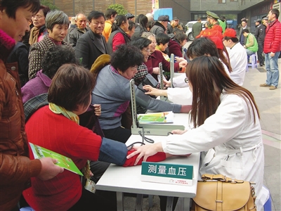 3月5日,青浦区文明办、团区委、志愿者协会联合举办了以“青春承载责任、志愿点亮生活”为主题的学雷锋活动,并将3月定为全区学雷锋志愿服务活动月,在全区范围内展开学雷锋志愿服务系列活动。图为来自各个行业的青年志愿者为市民开展义诊、测量血压、法律维权等便民服务。 通讯员 居德云 摄/文