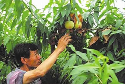文/摄 陈志强 露地栽培的水蜜桃,遇持续阴雨天气会造成自然落果,还会影响桃子的质量,能否利用大棚设施种植水蜜桃?浦东新区大团镇桃农盛新华经过5年来的刻苦钻研,采用大棚设施栽培水蜜桃获得成功。最近,盛新华发明的桃树大棚获得国家专利。