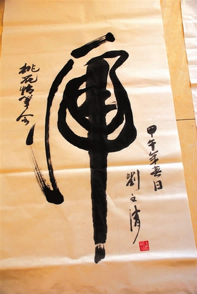 桃园里,桃花灼灼,春光明媚,老将军、老战士们饱蘸浓墨,为群众奉献精心创作的书画作品。“开放的明珠,巨变创奇迹”、“桃花映红故乡美”,南京军区原副参谋长、少将曾照喜写的书法遒劲有力。“旧地重游忆峥嵘岁月,满眼春色看家乡美景”、“闻鸡思奋发,跃马喜迎春”……一幅幅激扬正气的书法作品让参观者深受感染。老将军、老战士们还和市、区书画家们一起创作了“桃乡三月”、“翠竹报春”、“大团水蜜桃”、“清水荷莲”等传统水墨画。据悉,闫成贵、刘文清、王继英、宋渭澄等一批老将军,离休后迷上了传统书画艺术,乐此不疲。