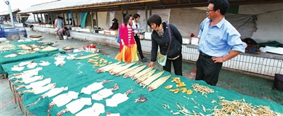 如果要在市内吃海鲜,金山嘴渔村或许是一个好选择。2011年,被称为“上海最后的渔村”的金山嘴渔村通过旅游开发使曾经以捕鱼为主要产业的渔业村重新焕发出崭新的活力。近年来,随着游客的增多,当地的村民纷纷做起了餐饮生意,同时带动了那些仍坚持捕鱼的渔民的小海鲜生意。图为傍晚时分,附近居住的市民陆续来到金山嘴海鲜小集市挑选食材。