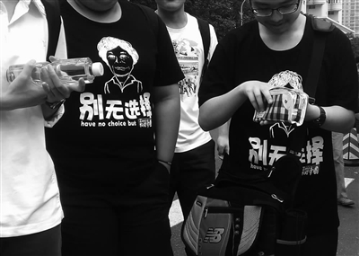 六月八日是今年本市高考的第二天。上午八点,黄浦考区大同中学考场,一群孩子身穿“别无选择”的T恤踏上赶考路。每年此刻,总是应考生和家长们最揪心的时候。