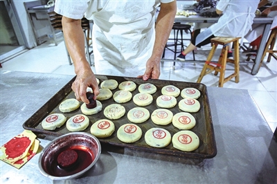 距离中秋节越来越近,此时金山区亭林镇上的月饼作坊也开始了一年中最忙碌的时节。