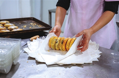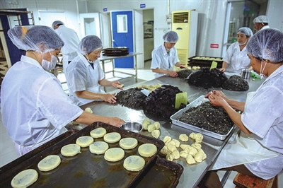 “通常我们一年仅制作两三个月的亭林月饼,高峰期每天能做两万多只。”亭林镇古松园食品有限公司负责人彭军说道。