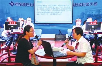 技能比武大赛有:必答题、抢答题、情景模似题、案例分析4个环节,8个参赛队选手胸有成竹,在比赛中对答如流很抢眼,加上“帮帮队”互动,场面热烈精彩。经过三个多小时紧张激烈的比赛,产生了技能大赛冠、亚、季军。浦兴街道代表队以最高分荣获冠军。新区和街道有关领导为20名个人优秀奖、最佳组织奖和冠、亚、季军团队颁发了荣誉证书和奖杯,在一片热烈掌声中,浦东新区社区事务受理服务中心技能竞赛总决赛圆满落幕。