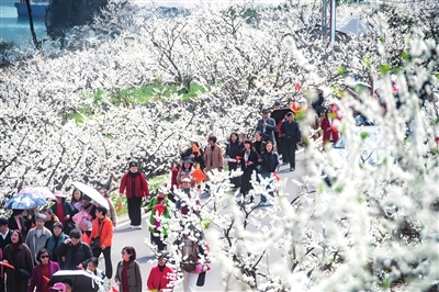 三四月份,重庆市巫山县曲尺乡脆李园的万亩李花竞相绽放,长江两岸被洁白的李花“铺满”,宛如春雪洒在山头。前来赏花的游客络绎不绝,曲尺乡村民孙美玲的农家乐也迎来了一年中最忙的时候。