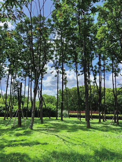 驱车驶下浦星公路,都市的喧嚣瞬间就被一派天然意趣隔绝。挺拔的香樟、蓬勃的青草,满眼的青绿让燥热的暑气都温柔了几分。蝉鸣声渐次入耳,更显得时光安静而漫长。这里是闵行区浦锦街道丰收村,一处都市里的“森系”秘境。