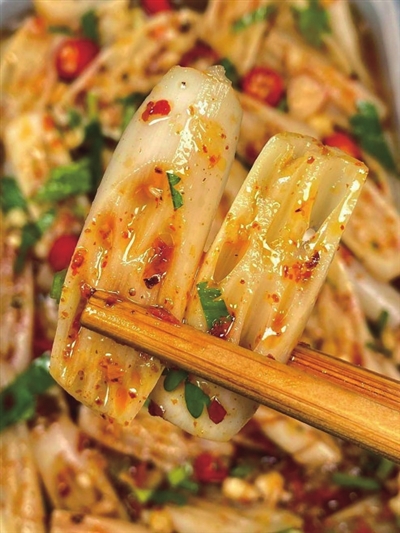 藕带是夏日里特有的清爽蔬菜,是“餐桌上的白玉簪”,它低热量、低脂肪、高水分、富含维生素 C和铁,清炒、酸辣、凉拌、煲汤都很美味。新鲜藕带刚被采摘后洁白如玉,但稍不注意就会变成褐色甚至发黑,不仅影响美观,还会降低食欲。当藕带贮藏不当、表皮破损或切开后,细胞结构会被破坏,多酚氧化酶(PPO)与酚类物质在氧气的参与下发生反应,生成醌类物质,这些醌类物质再经过一系列聚合反应,最终形成褐色的色素,导致藕带变成褐色。要想防止藕带变色,关键在于抑制 PPO 的活性或隔绝反应物,可采取浸泡、漂烫等方法来保持藕带的玉色。(来源:科普中国)