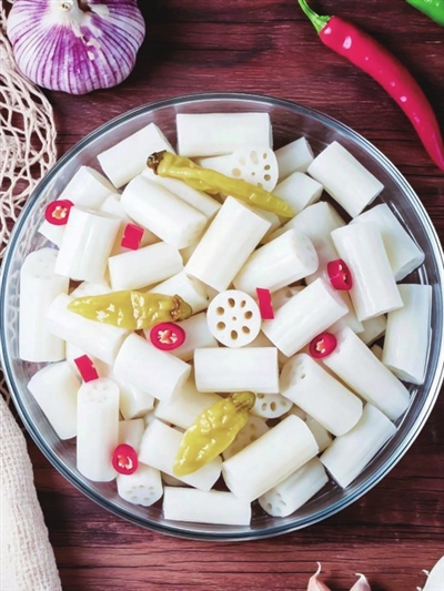 藕带是夏季池塘里特有的蔬菜,其外观洁白如玉、口感清脆爽口,还散发着清新的水生植物香气。深受人们的喜爱。在湖北、江苏等水乡地区,它是餐桌上的常客,既可清炒保持原味,也能与辣椒、腊肉等搭配烹调,相当美味。