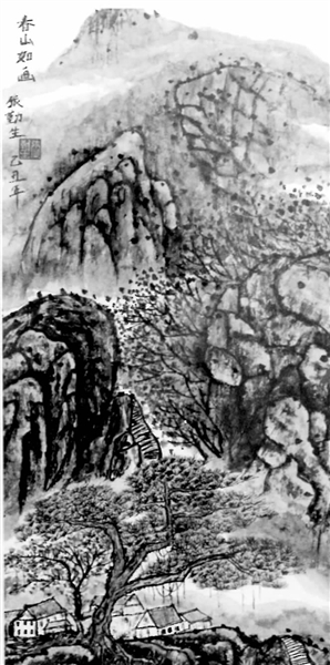 康复感言:这是我刚学会后画的山水,感受到的是山的气势,树的挺拔。