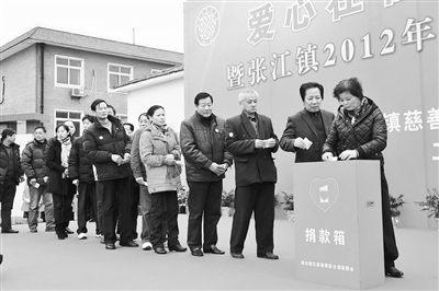 12月27日下午,张江镇科技广场上彩旗飘扬、鼓乐悠扬,一张张笑脸、一笔笔善款、一件件手工艺品、一幅幅书画作品凝聚着张江人民携手慈善十年的浓情厚意。这里正在举行2012年度张江镇“慈善公益联合捐”,此项活动在张江已延续了十年。