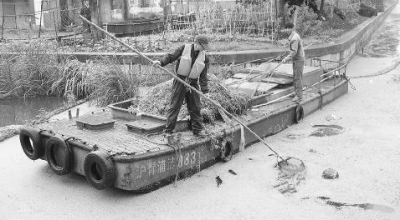 近日,由于天气闷热潮湿,水上的绿萍和浮漂草疯长,严重影响了青浦河道的清洁美丽。针对今年绿萍来得早、来得多的特点,上海欣城保洁服务有限公司党支部发动党员、保洁员加班加点赶制16只围绿萍的大网,釆取定点和流动围拉绿萍战域,全力打捞围剿城区内各河道中的水草和绿萍。