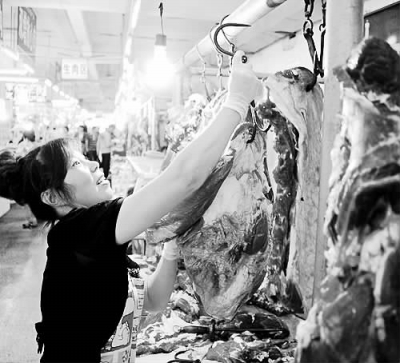 “儿子、孙女一直吃牛肉,对身体好,可现在也只能掺和着买点精猪肉吃了,牛肉太贵了。”过来买牛肉的孙老太太看着高昂的牛肉价格直摇头。