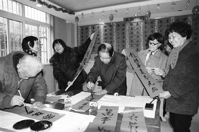 1月5日,位于历城路上的上钢独居老人助餐点十分热闹,六七位独居老人中的书法爱好者,挥毫书写了一百多条春联,送给前来就餐的独居老人。 通讯员 舒祖康 摄/文
