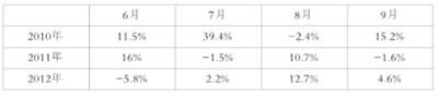 注:保单约定价是指纳入前三年各年蔬菜价格涨幅和当年度绿叶菜综合成本指数考虑后,保险前三年实际价格的平均值。其中r1指2011年6-9月各月蔬菜价格涨幅,r2指2012年6-9月各月蔬菜价格涨幅,r3指2013年6-9月各月蔬菜价格涨幅。2010-2012年“夏淡”期间相关蔬菜同比涨幅见下表: