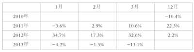 注:保单约定价是指纳入前三年各年蔬菜价格涨幅和当年度绿叶菜综合成本指数考虑后,保险前三年实际价格的平均值。其中r1指2011年12月-2012年3月各月蔬菜价格涨幅,r2指2012年12月-2013年3月各月蔬菜价格涨幅,r3指2013年12月-2014年3月各月蔬菜价格涨幅。2010-2013年“冬淡”期间相关蔬菜涨幅见下表: