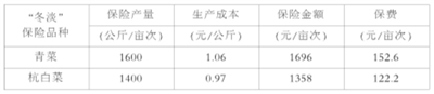 保险标的:“冬淡”期间上市的青菜、杭白菜。