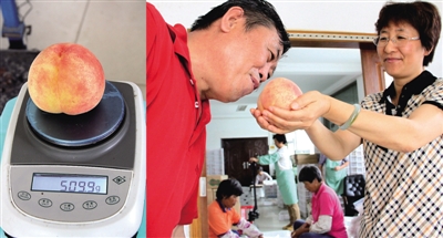 509.9克,这个桃子斤两数日前被“桃咏桃业”定格在了果品计量电子屏上,由此创下了南汇新凤蜜露桃的单体重量之最(见图)。新凤蜜露桃重量一般不超过半斤,八九两大已经堪称罕见,所以能产下这么大个斤两的桃实属稀奇。据“桃咏桃业”负责人何明芳分析,这与该桃今年“临产期”雨水较多及使用有机肥等因素有关联。新凤蜜露桃具有“南汇水蜜桃”皮薄、汁多、味甜之特性,且香气浓郁,极具市场好口碑。