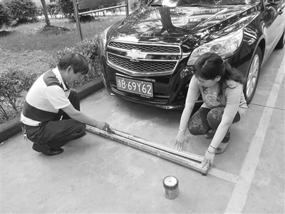 紧接着,居委书记、主任带着工作人员用油漆在空地上划车位,划好一个车位,写上一辆车牌号。当划到小区环形路上时,为了节省空间,就斜着划,实现45度夹角有序停车,增加停车密度,能多停2辆车。一个多星期后,终于把车位全部划好,使登记的185辆车子都有了自己的位子。