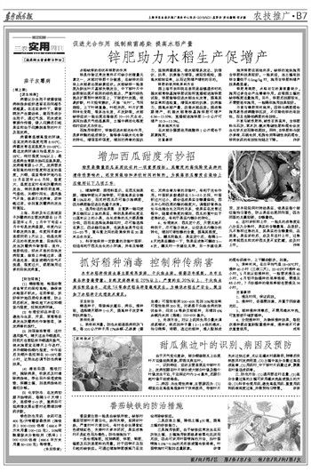 3、科学地保持一定数量的功能叶面积:创造有利于西瓜生长的小环境,并有足够健壮、无病虫害为害的功能叶,有利于光合作用。叶面积系数最好在1.5—2.0之间,叶面积过大过小,都会造成果实含糖量偏低,西瓜中心和四周的糖的梯度大。调整好营养生长与生殖生长之间的关系,使果实在发育过程中,随着成熟度的增加,西瓜的蔓叶处于老熟状态,有利于果实内糖分的转化。