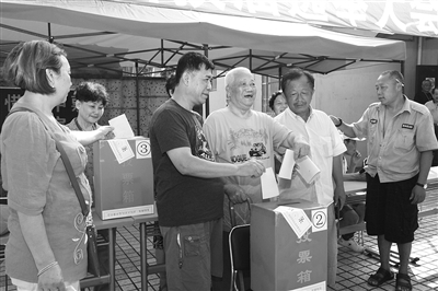 紧接着,又有一对年过六旬的韩福明、陆兰珍盲人夫妇来到小区选民站,在工作人员的帮助下,拿着红色的选票庄严的投下自己的一票,他俩激动地说:“虽然眼睛看不见,可是心里明白,选出能为我们居民服务的人当居委干部,打心底里高兴!”