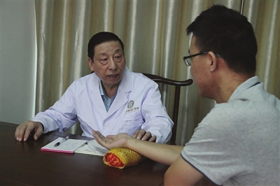 位于金山区朱泾镇的上海济德中医门诊部作为一家纳入市医保定点单位,大力弘扬中医特色医疗,努力为百姓提供“便捷、廉价”的中医中药优质服务,并定期请沪上名医坐堂诊治,解决附近居民和外来人员的“看名中医难”现状,受到百姓欢迎。图为上海市名中医、享受国务院特殊津贴的赵国定主任医师正在为患者服务。通讯员 庄毅 摄/文