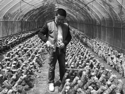邹正云告诉记者,林下食用菌种植是一种以林为主的农林复合共赢的林下经济模式,主要是利用林荫环境,营造适宜菌类生长的小环境,生产食用菌类产品,也是目前较为成功的林下经济模式之一。林下食用菌种植实现了从单纯利用林产资源向林产资源和林地资源结合利用的转变,形成了多维立体产业经济结构,这比单一经营林木能更有效地改善生态环境,实现生态系统的良性循环。“我们用一句话概括,就是‘以林养菌,以菌促林’”,在邹正云占地500亩左右的蘑菇庄园里,林业生产为食用菌的生长创造了环境,而食用菌生长中所产生的养分和物质也对树木的生长有促进作用。
