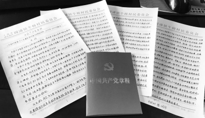 来自牛桥村的潘明华是村里的一名保洁员,她虽然不是党员也不是入党积极分子,但始终怀有一颗感恩党的心,在得知村里的党员都在积极参加“手抄党章”的活动时主动要求加入,在她上传的照片中字迹虽算不上漂亮却密密麻麻十分工整;瑞阳苑居民区的王念祖夫妇俩都是党员,如今身在重庆,但他们通过党组织的党员微信群得知镇里正在开展“手抄党章100天”的活动,马上积极参与,手边没有现成的手抄本,便拿起手边的报告纸照样抄得工工整整,只要心中有党而身在他乡又何妨;公元居民区的沈云飞、王引兰夫妇用手抄党章的形式作为他们的金婚纪念,50年携手走过的漫漫岁月中对党忠诚、相爱永恒是对彼此的承诺更是人生的信念……