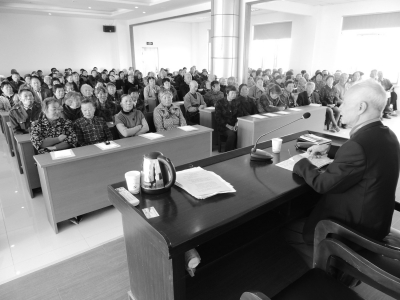 本报讯 11月4日,浦东新区书院镇洼港村九旬老党员郁伯生早早来到村委会,和村民一起参加由上海华源传统文化研究院举办的“文明修身”道德讲堂。