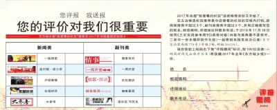 为进一步提升周二、四B版《三农实用参考周刊》的办报质量,我们结合“我爱看的栏目”读者评选活动开展此次问卷调查。问卷采用不记名方式,请根据您的个人真实感受填写。