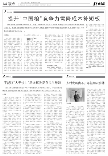 提升“中国粮”竞争力需降成本补短板