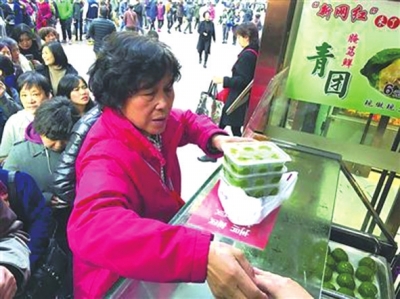 在今年诸多的新品中,最亮眼并成功跻身新“网红”的要数新雅粤菜馆推出的腌笃鲜青团了。近日来,每逢上午,南京东路新雅粤菜馆门口就排起长队,即使规定了每人限购两盒(每盒6只装,6元一只),排队也要1-1个半小时。