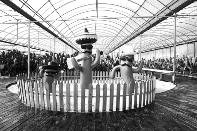 除了传统农产品,“山阳田园”另一个“镇园之宝”便是可以“吃”的仙人掌。曾经这里只是金山海边一片普通的沙田,从2002年起,沙田里悄然生长起一片仙人掌林。经过十多年的发展,这种原产于墨西哥的热带植物在上海扎根结果,实现了量产,成为金山的特色农产品。如今,上万棵翠绿的仙人掌沐浴在阳光下,让人仿佛置身于沙漠中的绿洲。和我们平时看到的仙人掌不同,这里的仙人掌大都在2.5米以上,平均每片有30至40厘米长,15厘米左右宽,长成后一片仙人掌大约有1斤半重。仙人掌基地负责人朱培林介绍说,这些仙人掌都是从墨西哥米邦塔地区引进的特殊品种,其特点是高大,不仅片子肥厚,产量高且抗干旱。而它最主要的作用还有增加人体免疫能力。据了解,朱培林从2002年开始开发了仙人掌基地,从最初的15亩发展到了现在的近百亩。现在,基地的仙人掌主要用来做仙人掌茶,根据年份不同,仙人掌茶的价格也不等,其中6年以上的仙人掌茶口感最好,入口甘甜,回味无穷。此外,仙人掌还能凉拌、生吃,或者研磨成粉。一般游客来此,临走都会选择带几片鲜切的仙人掌回家烧菜,也有人选购仙人掌粉、仙人掌干片等健康食品。