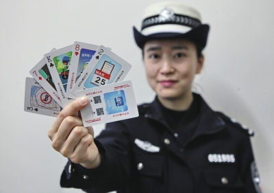 3月25日,被称为“史上最严”的新修订《上海市道路交通管理条例》正式实施。为了让市民更好地了解新交规、遵守新交规,金山公安分局交警支队结合本区域实际,印制了一批以“尊法守法,绿色、安全、文明出行”为主题的上海市交通道路管理条例宣传品,其中新交规宣传扑克在全市还属首创。连日来,金山交警在各单位、社区发放扑克,受到市民的欢迎。