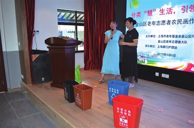 活动中观看了老年志愿者在农民画培训活动及比赛现场的精彩照片集锦,与会领导为获奖的老年志愿者颁发荣誉证书并表示祝贺。在活动有奖问答环节,老年志愿者们积极踊跃回答主持人提出关于垃圾分类的相关问题,不仅展现了老年志愿者们的风采,还体现出了他们紧跟垃圾分类新时尚的脚步。最后,张立志总队长在讲话中对本次活动表示肯定,希望金山区老年志愿服务在今后要进一步拓展服务形式和服务内容。