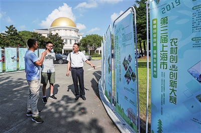 ■ 8月6日,第三届上海市农村创业创新大赛决赛在大众国际会议中心举行,在此前举办的初赛活动中晋级的20位初创组选手、10位成长组选手,分别通过6分钟的项目路演和3分钟的专家答辩,展示项目创新点和核心特色。(图为赛前,参赛和观摩人员在场外对展示的创业创新项目进行交流。) >>>详见6版 记者 张树良 摄文