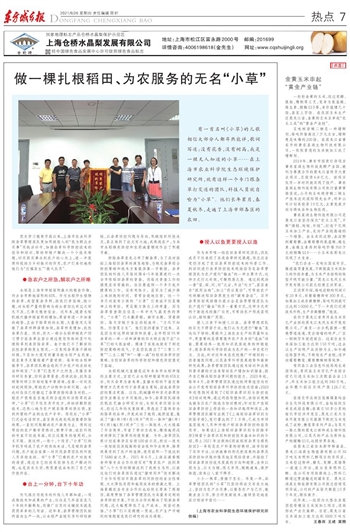 党史学习教育开展以来,上海市农业科学院杂草管理团队更加积极投入到“我为群众办实事”实践活动中,加强杂草科学防控技术的指导和培训,帮助种植户解决一个个技术难题,切实将实事办到农户的心坎上,进一步发挥科技助力乡村振兴的作用,农户们亲切地称他们为“庄稼医生”“救火队员”。