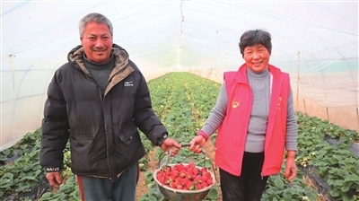 “现在正是草莓集中上市期,每天可采摘300斤左右。”在“红颜”草莓大棚里,合作社负责人周玉根和妻子彭娟珍正忙着采摘草莓。