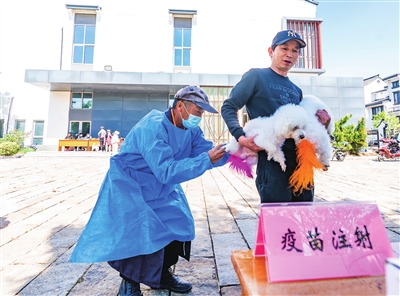 近日,闵行区马桥镇同心村的村民们牵着各自的爱犬,来到村里设立的流动免疫点,接受新一轮的疫苗接种,并同步完成了办证登记。免疫点现场,村民自觉排队,并为狗狗牵上了牵引绳,在兽医和管理人员的引导下,顺利完成每只犬只的疫苗接种和详细的信息登记工作。该区动物疫控中心的技术人员还在现场向村民们普及犬只狂犬病的危害、科学免疫的重要性,以及文明养犬的各项规定。据了解,今年闵行农村地区犬只狂犬病免费集中免疫与犬只登记办证工作已在各街镇陆续进行。记者 杜洋域 摄文