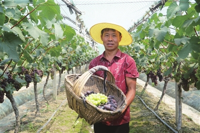 走进采摘园,一派繁忙丰收景象映入眼帘。工作人员正弯腰穿梭在葡萄架下,动作娴熟地挑选成熟果实进行采摘,为当天的市场供应紧张忙碌着。园主李多喜介绍,目前采收的主要是乒乓、夏黑、醉金香和巨峰等早熟品种,日采收量约100斤。随着气温逐渐升高,葡萄产量还将稳步增长。今年,其30亩葡萄园预计亩产可达2500斤,总产量约7.5万斤。园内葡萄品种丰富多样,不仅有早熟的夏黑、醉金香等,还有妮娜皇后、浪漫红颜、巨玫瑰等中晚熟品种,确保夏秋两季市场供应不断档。