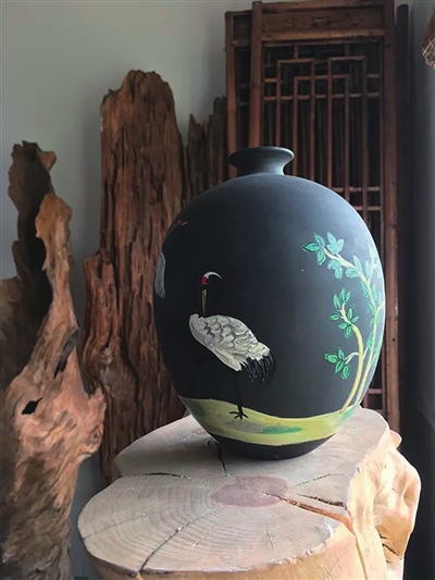 要么不做,要做必须做到极致,这是宋秋军的一贯宗旨;而在传承的基础上不断创新,则是宋秋军的一贯理念,“老祖宗的黑陶做出来不是看的,而是要用的。不能普及,只能观赏,这不是我的初衷。”传统的,仿古的,宋秋军的团队都要做。不仅是用黑陶的工艺做传统的陶罐,还要积极汲取金山农民画等金山特色传统文化的精华,同时结合良渚文化,生产制作黑陶盘居家摆件、马克杯等黑陶文创产品。此外,在保留“黑如漆、明如镜、硬如瓷”等传统特征的基础上,他还新创了亚光黑陶和无光黑陶,重现了“如铁之质、如玉之润”的独特魅力。
