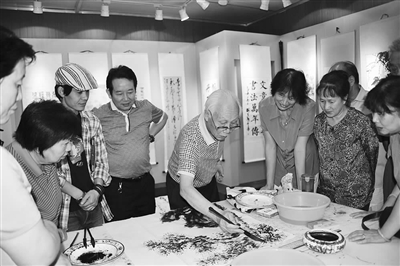 9月19日,张江镇三桐书画社20多位书画爱好者现场挥毫泼墨,以书画笔会的形式喜迎国庆喜迎党的十八大。 通讯员 郑丽摄/文