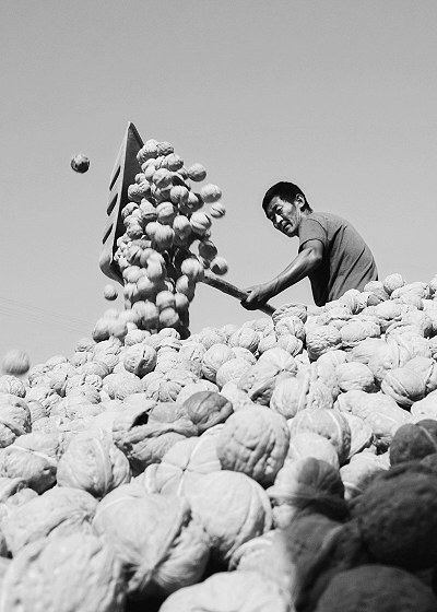 9月7日,白露时节,河北省遵化市东旧寨镇的农民朋友喜迎核桃丰收。近年来,遵化市为促进农民增收主打“绿色生态牌”,大力开发荒山,植树造林,将林果业作为荒山治理和产业结构调整的方向。该市按照“突出强项抓特色、龙头带动扩规模、培育精品创品牌”的发展思路,大力发展特色林果,打造“拳头”品牌,加快现代农业发展步伐。