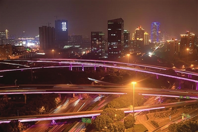 上海西南隅最大立交桥——莘庄立交景观灯带现已全新亮灯,其高架架空路段的6个方向、20个匝道出入口从此将在夜幕中汇织出一道轮廓通澈、流光溢彩的夜色美景。从高处俯瞰,那一条条明透的悦目光带就宛如夜幕下炫酷的“彩虹”,为演绎闵行主城片区城市副中心莘庄镇的宜居宜业城市化形象又添一分新姿(见图)。