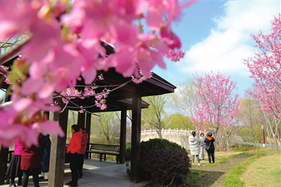 据悉,公园目前有110个品种的樱花1.4万余株,种植面积达1400余亩。通过近年来樱花品种比例调整和布局优化,使樱花景观色彩更丰富、花期无断档、观赏期更长。贯穿东西的“最美樱花大道”串联9大赏樱景点,另有新打造的松月林、兰兰广场和阳光林等富有中国传统文化特色的新景观。
