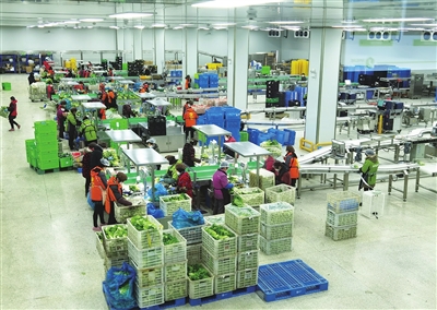 ■8000平方米的蔬菜加工配送中心,工作人员正有条不紊地择菜、称重、包装,这里,每道关口均设有智能识别装置。位于崇明竖新镇的上海静捷蔬菜专业合作社算得上是崇明区的种菜“大户”,主营近10种常见绿叶菜,其中90%的品种已通过绿色认证。确保从田头到餐桌的品质不“下线”是每一位务农人的心愿,为此,静捷合作社聚焦贯通全产业上,现已形成“自有基地+采后加工+物流配送+农企对接”的经营模式,大力发展“订单农业”。作为盒马鲜生自由品牌“日日鲜”的绿叶菜供应商之一,为确保产品保鲜和运输保障,静捷合作社专门建造了标准化包装车间、流水线,采用“人工分拣+机械切割”相结合的方式,运用真空压缩等技术严格分级,以全程冷链确保产品品质。记者 欧阳蕾昵