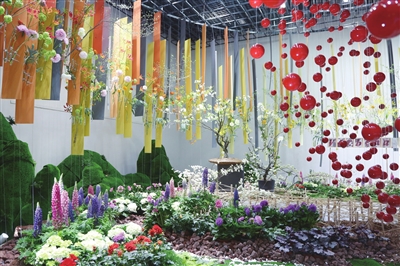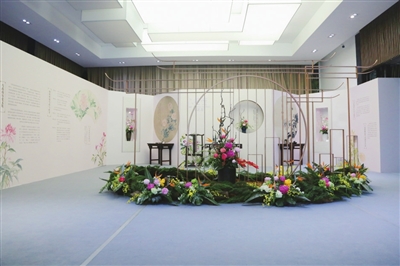 展览以本届上海(国际)花展的第一主题花芍药开篇,因其有“依依不舍、真诚不变”的花语,故而取名“心相惜”。步入展厅,一座意象化的江南庭院便映入眼帘——小桥、月门、屏风、桌案、粉墙黛瓦,配以中国插花大师王路昌先生亲力打造的多组芍药花艺作品,让游客宛若回到了姜夔笔下的《扬州慢》里,脑海中不由浮现“念桥边红药,年年知为谁生?”