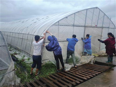 ■ 受今年第14号台风“灿都”影响,沪郊各地风雨交加,陆地最大阵风可达9~11级,普遍有暴雨到大暴雨。按照市委、市政府工作要求,本市农业农村部门严格落实各项防御措施,结合上一轮“烟花”台风抗灾防御工作经验教训,重点对大棚设施、畜禽圈舍、渔业养殖场所、渔港设施和堤坝等再加固,落实圩区排涝、田间排水等防范措施,对经济作物进行及时抢收,落实应急物资储备,最大程度减少灾害损失。
