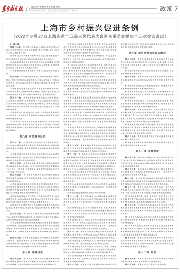 第九条 本市推动建立长江三角洲区域共同促进乡村振兴的工作机制,加强政府间合作,在长江流域生物多样性保护、乡村休闲旅游、乡村振兴人才培养、乡村科技服务、美丽乡村建设等领域促进区域协调,推进乡村振兴一体化发展。