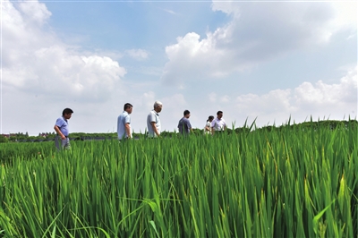 临近白露,沪郊中、晚熟品种水稻进入抽穗扬花期。走进位于浦东新区川沙新镇的上海呱呱叫农产品专业合作社,水稻株株青绿,长势良好。汪汪水田,颜色鲜艳的小花点缀其间。“田埂边的花是百日菊。”浦东新区农业技术推广中心粮油科科长顾春军介绍道,“在水稻四周种植百日菊是绿色防控技术之一,保护粮食作物的同时,还能够美化‘田容田貌’。”