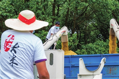9月2日,黄浦江源头二级水源保护区的松江大米正式开镰收割。在松江区泖港镇胡光村,6台久保田888联合收割机在田间穿梭,优质国庆稻“松早香1号”随即送往大米加工厂。经过烘干、碾米等工序,新米已于9月5日上市。